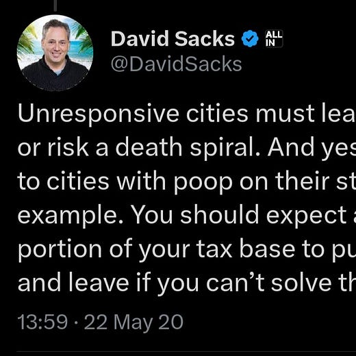 Then there's Silicon Valley's other America. In this other America they don't need to pay taxes or face regulations. They get to extract more money up and up into the already wealthy pockets of VCs while making it harder and harder for everyone else to make a living.